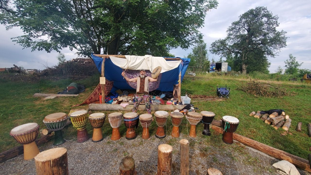 Der Herzschamane ladet mit Trommeln und Gesang zum gemeinsamen zelebrieren des Lebens, Lachen, Tanzen und Weinen zu jeder möglichen Gelegenheit ein.